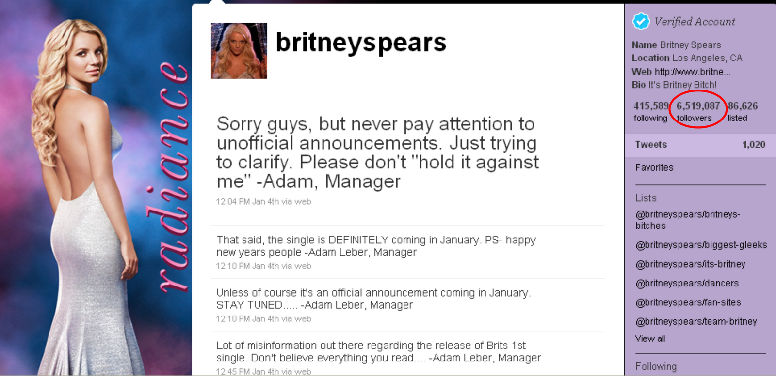 3. Britney Spears dengan jumlah 6.519.087 follower